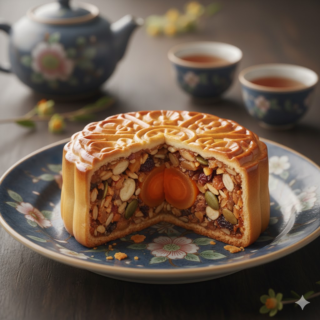 Bánh Trung Thu nhân thập cẩm là hương vị truyền thống, mang đậm chất cổ điển với sự hòa quyện của nhiều loại hạt, mứt và thịt.
